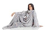 - GLOW: se carga con la luz y brilla en la oscuridad. La manta polar con mangas tiene un tamaño generoso que cubre más allá de los pies y un bolsillo central, tan bonita como una manta de algodón pero versátil y fácil de lavar, útil en los meses de invierno
