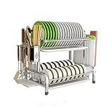 - Gran Capacidad para Cocinas Pequeñas: La Capa Superior del Rejilla para Secar Platos de 2 Niveles Puede Almacenar 17 Platos Y Ollas, la Capa Inferior Puede Almacenar 18 Tazones, el Rejilla para Cubiertos Lateral Puede Contener Varios Utensilios.